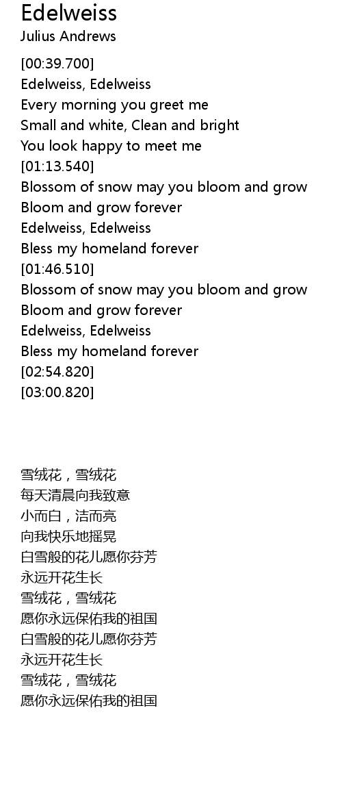 Edelweiss - The Sound of Music (with lyrics), read full description please :D* Hey everybody! For those who can't find the original version (or, at least, the first version that . We Have got 7 pic about Edelweiss Lyrics images, photos, pictures, backgrounds, and more. In such page, we additionally have number of images out there. Such as png, jpg, animated gifs, pic art, symbol, blackandwhite, picture, etc.